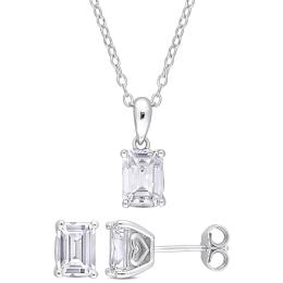 Julianna B Sterling Silver Created White Sapphire Earring & 18" Pendant Set