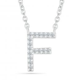 Sterling Silver & Diamond "F" Initial Necklace