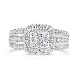 Diamond Revelations 14K White Gold 0.95CTW Princess Cut Halo Bridal Ring