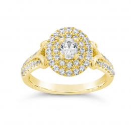 Diamond Revelations 14K Yellow Gold 0.99CTW Oval Diamond Halo Bridal Ring