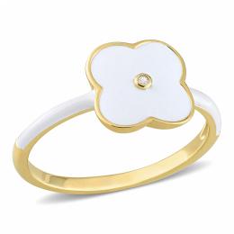 Julianna B Sterling Silver Yellow Plated Created White Sapphire and Enamel Ring