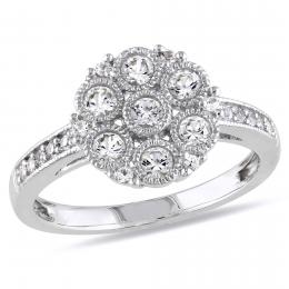 Julianna B Sterling Silver Created White Sapphire Floral Ring