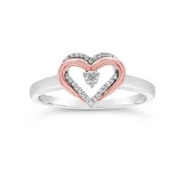 Sterling Silver & 10K Rose Gold Heart 0.11CTW Diamond Ring