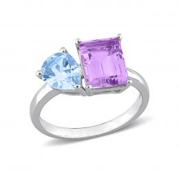Julianna B Sterling Silver Sky Blue Topaz, Amethyst & Pink Amethyst Open Ring