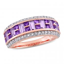 Julianna B Rose Plated Sterling Silver Pink Topaz and Amethyst 5-Stone Ring