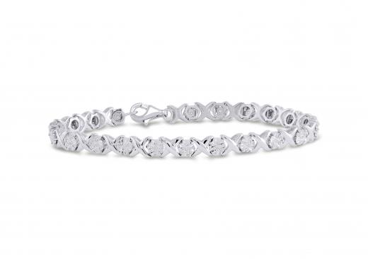 Shower her with hugs and kisses. This Sterling Silver tennis bracelet boasts 0.23ctw of striking round diamonds and is artfully crafted in the "xo" style. The lobster claw clasp will ensure she never loses your hugs and kisses.