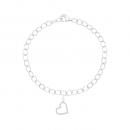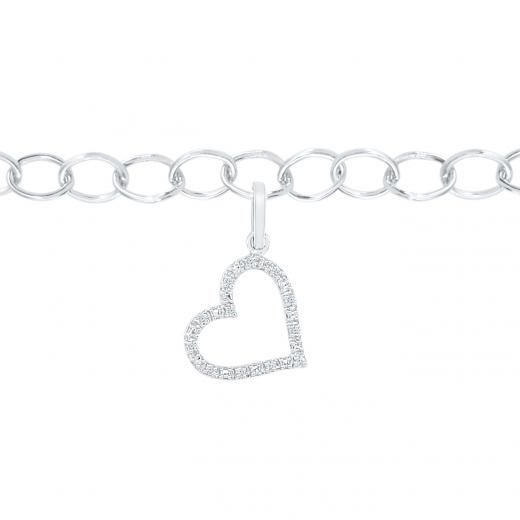 This sweet charm bracelet is crafted form sterling silver and starts your collection with a lovely little diamond set heart with 0.03ctw of glittering stones. The cable link bracelet is 7.5" in length but can be worn at any length with a secure lobster claw clasp.
