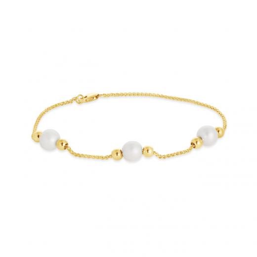 Stand out from the crowd with this glistening 10k yellow gold bracelet. Featuring lustrous white freshwater pearls and gleaming gold balls. This bracelet has a special gold silicone beads that makes it adjustable so you can wear it in different configurations. This versatile bracelet is sure to become a favourite in your jewellery collection.