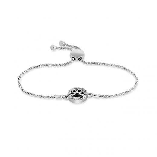 Midnight Diamonds are artfully designed in a paw print motif. Crafted in sterling silver with a toggle to adjust the fit, there are 0.05ctw of white and treated black diamonds. Bella Moda- Beauty is always in fashion.