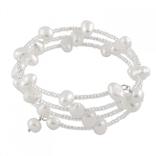 A triple row white freshwater pearl coil bracelet in sterling silver