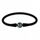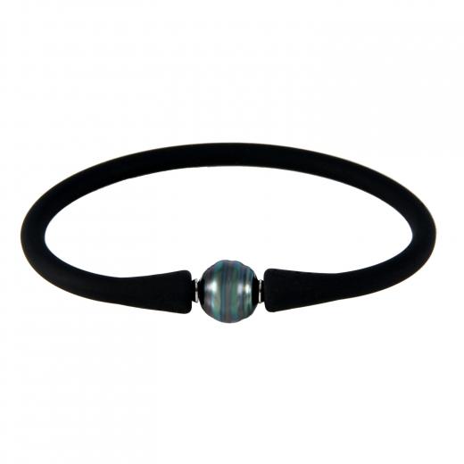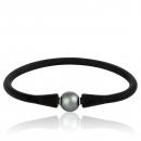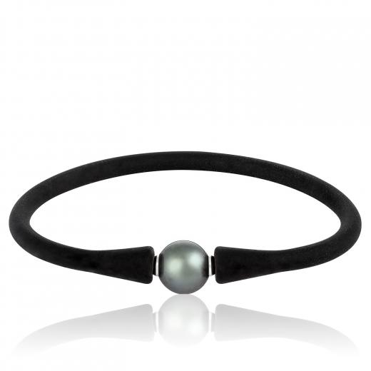 This bracelet features a sleek black silicone band with a stunning Tahitian pearl, creating a modern yet elegant design. The 8" length makes it a comfortable fit, and the dark pearl adds a touch of sophistication to the minimalist style. Perfect for everyday wear or a subtle statement piece.
