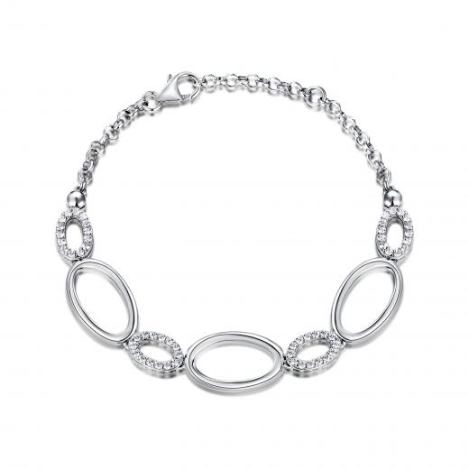 This shimmering bracelet is crafted in lustrous sterling silver and features dazzling cubic zirconia's. Polished to a brilliant shine, this marvelous bracelet is sure to make a standout addition to any jewellery collection. Coordinate this bold and opulent bracelet with any attire and add a touch of elegance and class to your look.