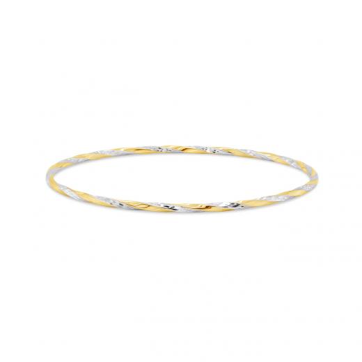 This classic yet trendy twisted slip-on bangle is crafted in lustrous 10K yellow and white gold. Great for stacking with other bangles this bracelet is a perfect way to add a touch of elegance and sophistication to any ensemble. This stunning piece makes a lovely addition, suitable for all occasions.