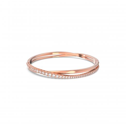 The Swarovski Twist Bangle features a sleek, contemporary design with a subtle twist that adds a touch of modern elegance. Set with sparkling crystals, it catches the light beautifully, making it a statement piece that can easily elevate any outfit.