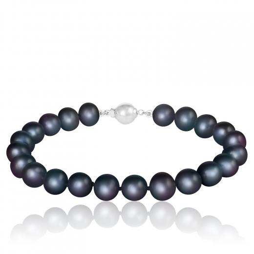 This elegant 8-inch bracelet showcases lustrous black freshwater pearls, each one perfectly round and iridescent, strung together to create a sophisticated and timeless piece.