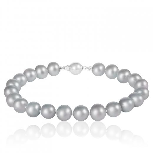 Featuring lustrous 8mm grey freshwater pearls, each carefully selected for their natural sheen, the bracelet is crafted with a delicate sterling silver clasp that adds a touch of shine. The soft, cool tone of the grey pearls complements any skin tone, making this piece versatile for both casual and formal occasions.