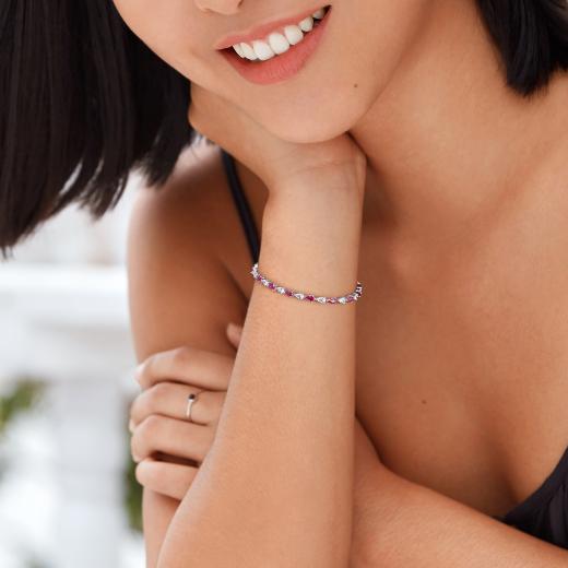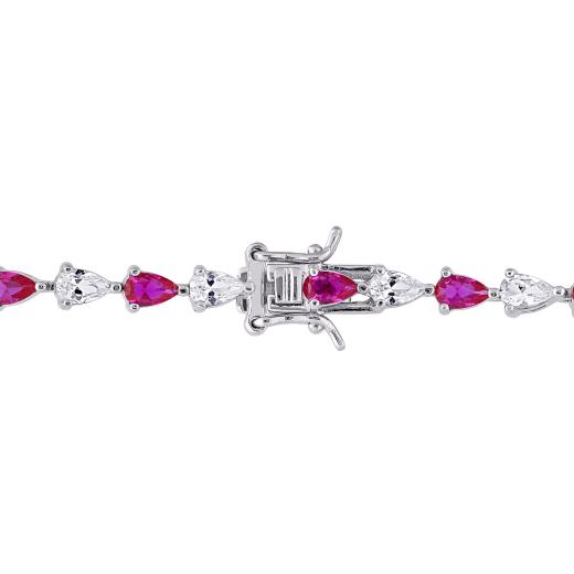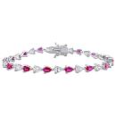 This colourful teardrop tennis bracelet is crafted in sterling silver and features 15 pear-cut red cubic zirconia gemstones and 15 pear-cut created white sapphire gemstones studded alternatively in a tennis design. Enhanced with a high polish finish, this alluring bracelet is a valuable addition to any jewellery collection.