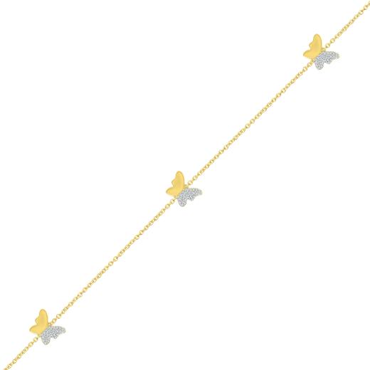 Adorn your ankle with the Bella Moda 10K Yellow Gold Diamond Butterfly Anklet. Crafted from 10-karat gold, delicate butterflies, aglow with shimmering diamonds, gracefully dance along its length. Effortlessly enchanting, this anklet adds a touch of whimsical beauty, embodying the grace and freedom of fluttering butterflies.