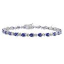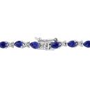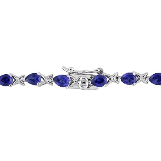 Introducing the 5 1/3 ct TGW Pear-cut Created Blue Sapphire X Link Bracelet in Sterling Silver, an exquisite and fashionable piece that exudes timeless elegance. This captivating link bracelet features mesmerizing pear-cut created blue sapphires, showcasing the deep blue hue that symbolizes wisdom, loyalty, and nobility. As the birthstone for September, blue sapphires make this an especially thoughtful gift for those born during this month.Expertly crafted in sterling silver, this bracelet boasts a unique X link design that is both stylish and comfortable to wear. The 7-inch length is perfect for layering with other bracelets or wearing on its own for a chic and sophisticated look. The stackable design allows you to create a personalized style that reflects your unique taste, making this bracelet an essential addition to your jewellery collection.