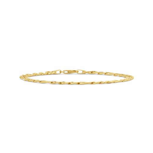 This 8.5" bracelet features solid diamond-cut Figarucci links, crafted in 10K yellow gold. The intricate design combines smooth and textured links, adding depth and shine with every movement. Its elegant yet bold style makes it a perfect accessory for both everyday wear and special occasions.