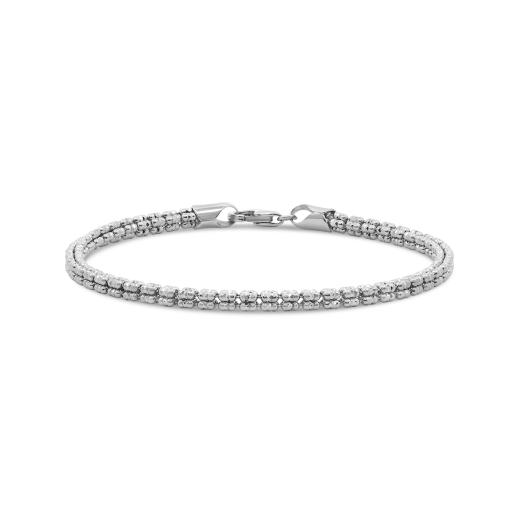 Crafted from premium sterling silver, this 7.5-inch bracelet features precision-engineered 2mm ice cube links, offering a clean, contemporary design that exudes understated sophistication. The bracelet’s geometric structure provides a sleek, modern look that is both versatile and durable, perfect for elevating everyday wear or complementing more formal attire.