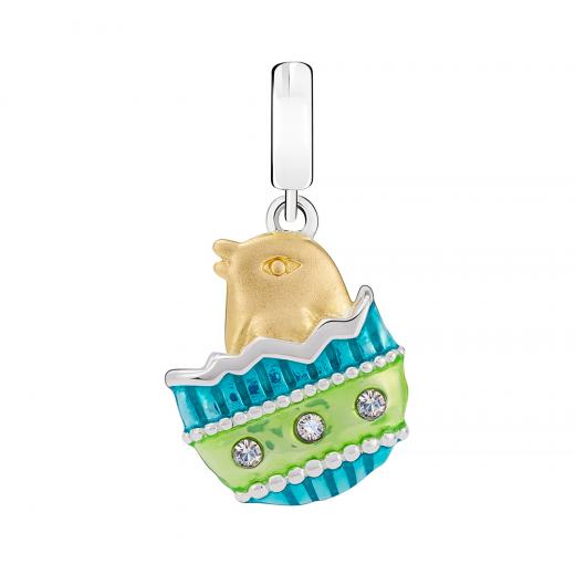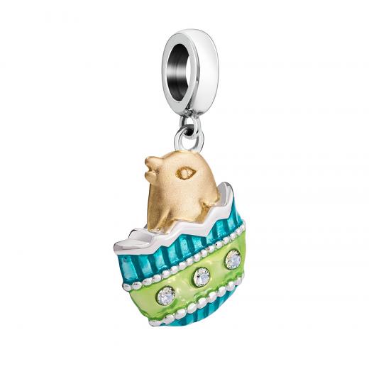 This little chickadee has just hatched! Limited Edition hanging charm is sculpted from sterling silver on both sides with transparent enamel, Swarovski Crystals and 14 karat gold electroplating.