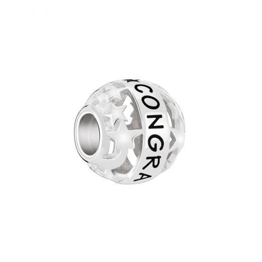 Make the celebration even better with the Starry Congratulations charm. The design features a sculpted star pattern framings a banner reading "Congratulations." Made with sterling silver and black enamel. This is a memory to keep forever.