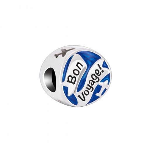 Bon Voyage! Fulfill your inner wanderlust. Whether you're planning the trip of a lifetime or creating a memory, Chamilia's Bon Voyage Charm is the perfect memento. The sterling silver design features a plane and banner flying over the globe's latitude and longitude lines highlighted in blue basse taille enamel. Let's go on an adventure.