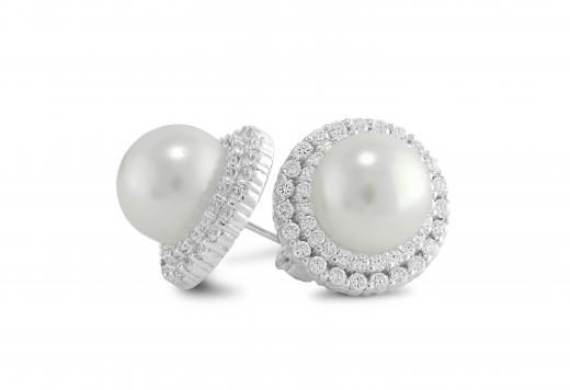 These lavish sterling silver earrings will prove an invaluable accessory. A smooth freshwater pearl is surrounded by sparkling cubic zirconia. Their beauty will truly mesmerize her.