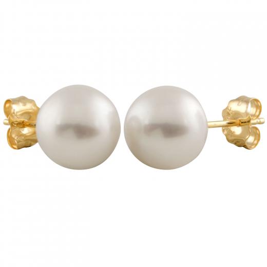 Chinese cultured saltwater pearl studs, 7-7½mm, 14k gold.