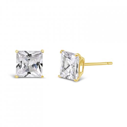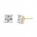 These gorgeous earrings are crafted in lustrous 10k yellow gold and each set with a sparkling 6mm princess cut cubic zirconia. These earrings are a lovely choice to suit all occasions and are great for travelling. Buy a pair for yourself today or someone you love!