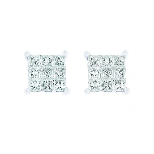 Fit for a princess, these 0.25ctw diamond stud earrings feature nine seamless princess cut diamonds, in 10kt white gold, for a look that truly shines.