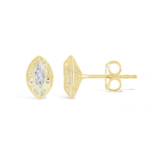 Crafted in warm yellow gold, these stud earrings feature dazzling pear-shaped cubic zirconia gems. Their classic design and sparkle make them a versatile choice, perfect for both everyday wear and special occasions. These earrings will effortlessly enhance your style with a touch of sophistication and glamour.