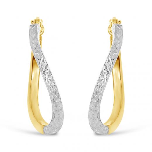 These earrings are a perfect blend of classic elegance and modern style. The combination of yellow and white gold, along with the diamond-cut twisted design, adds a unique and captivating dimension to your outfit. Whether you're dressing up for a special occasion or adding a touch of glamour to your everyday look, these earrings are a statement piece that will undoubtedly make you stand out with their brilliance and style.