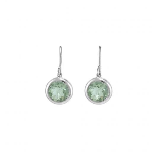 These classic green quartz drop design earrings are crafted in lustrous sterling silver. These bezel set green quartz gemstones will instantly add a touch of colour and sophistication to any ensemble. .
