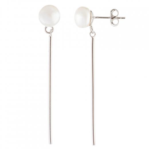 A pair of white dangling freshwater pearl sterling silver rhodium plated earrings