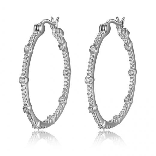 SS ELLE "Rodeo Drive" Rhodium Plated Sterling Silver Cubic Zirconia 30MM Station Hoop Earring