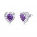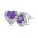 These romantic earrings each feature a dramatic heart-shaped amethyst set in sleek sterling silver, accented with sparkling diamonds.
