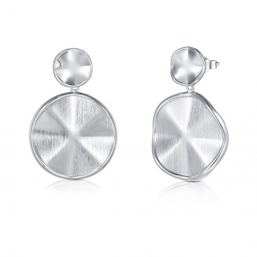 These earrings feature a textured circle design made from sterling silver, offering a stylish and contemporary look. The textured detail adds visual interest, making them a versatile accessory that can easily complement both casual and formal outfits.