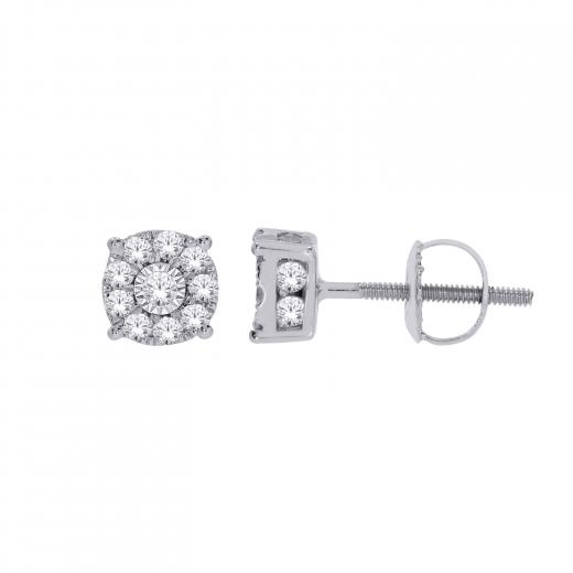 Gorgeous in gleaming 10kt white gold, these stunning diamond cluster stud earrings shine with 0.50ctw of shimmering round diamonds. They are secure with posts and butterfly backs.