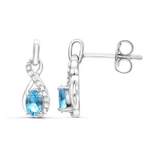 These modern yet classic, infinity design earrings are crafted in gleaming sterling silver and are sure to become a favourite item in your jewellery collection. This item is perfectly adorned with shimmering white topaz and two oval cut blue topaz, which is the birthstone for December. If you are looking for something stunning, order this for yourself or someone you love today!