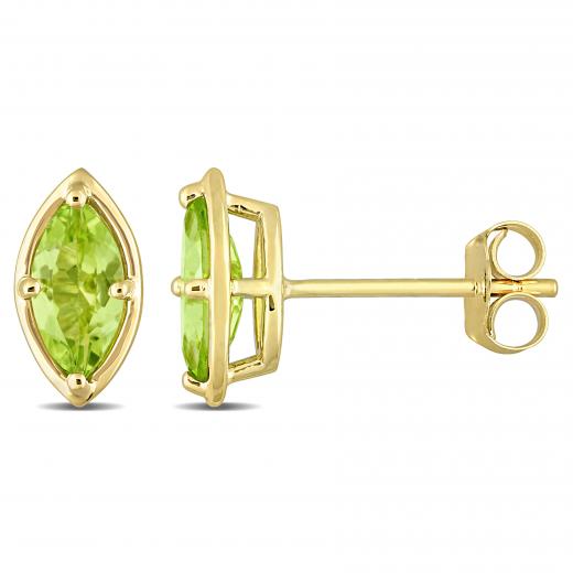 These unique marquise stud earrings are crafted in 14-karat yellow gold and feature two marquise-cut, prong-set peridot gemstones. Enhanced with a high polished finish and secured with butterfly closures, these gemstone earrings are a priceless possession. These versatile earrings are perfect for daily wear as well as for special occasions.