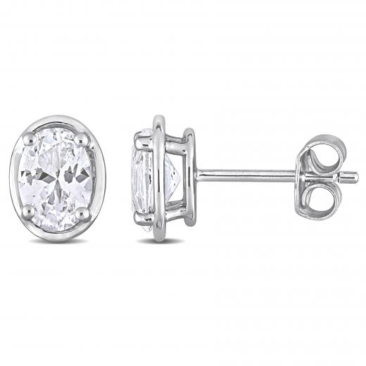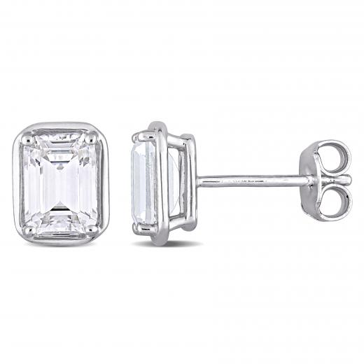 These stunning stud earrings are crafted in lustrous sterling silver and feature two octagon-cut, prong-set created white sapphire gemstones. Enhanced with a high polished finish and secured with butterfly closures, these versatile earrings will coordinate well with a casual as well as formal attire. A timeless piece to add to your collection.