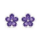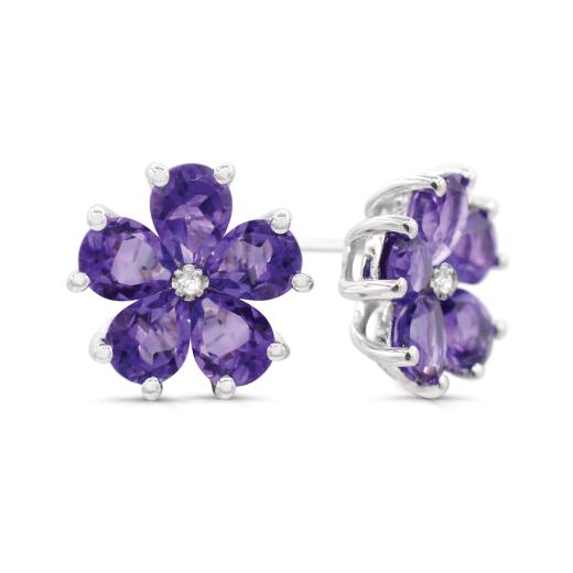 These wonderful floral earrings are crafted in sterling silver. These lovely earrings features pear-cut amethyst gemstones clustered together to form a flower, each accented with a shimmering diamond. Enhanced with a high polish finish, these stunning earrings are sure to be a show stopper. These earrings are the perfect and timeless addition to any jewellery collection and makes a great gift for your special someone.