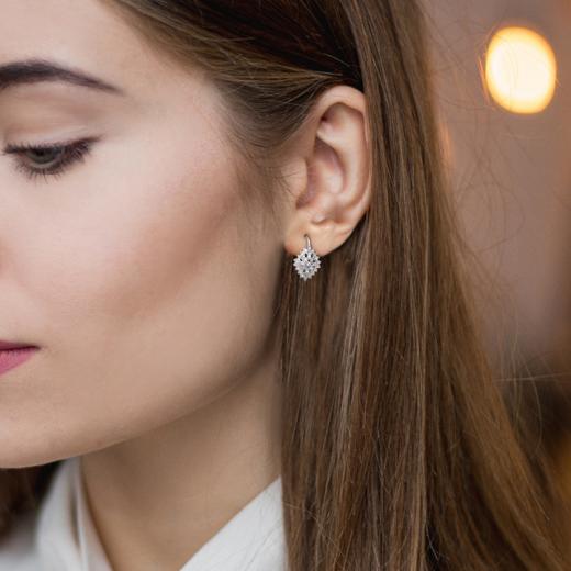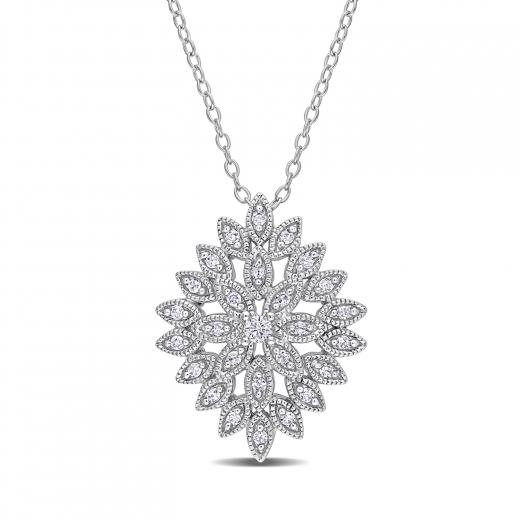 These diamond filigree flower vintage earrings are crafted in sterling silver and feature 60 round-cut, prong and pave-set white diamonds in a unique marquise floral drop design. Enhanced with a milgrain finish, these modern leverback earrings are a perfect addition to any jewellery collection. These diamond earrings are a great gift for a woman with a classic and trendy sense of style.