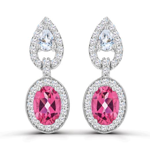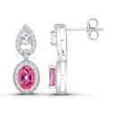 These classic halo style earrings are crafted in lustrous sterling silver and feature pink and white topaz gemstones. These earrings are sure to add a touch of sparkle to any ensemble. A perfect gift for that someone special in your life!
