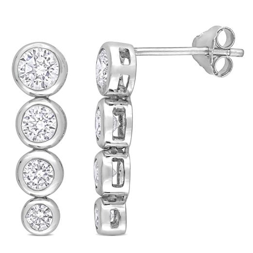 These cubic zirconia graduated dangle earrings are crafted in sterling silver. Each of these drop earrings feature four round-cut, cubic zirconia gemstones beautifully arranged in a graduated design. Enhanced with a high polish finish, these classic drop earrings are secured with butterfly backs. A stunning addition to any jewellery collection.