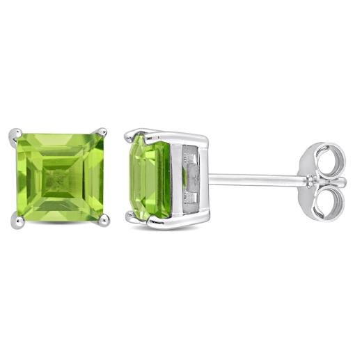 Create a dramatic look that makes heads turn with these luxurious Peridot Square Stud Earrings. Crafted in lustrous sterling silver, they feature two princess-cut, 4 prong-set, peridot gemstones (6x6mm) studded in a classic heart detail basket setting. Secured with butterfly closures, these brilliant gemstone earrings will make a gorgeous addition to your versatile jewellery collection and will always be treasured.