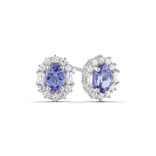 These exquisite earrings feature captivating tanzanite gemstones, set in polished sterling silver and complemented by sparkling white zircon accents. The rich, violet-blue hue of the tanzanite is beautifully highlighted by the brilliance of the white zircon, creating a stunning contrast.