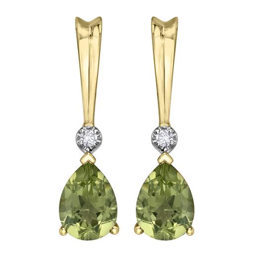 These gorgeous earrings feature a pear cut peridot accented by a shimmering diamond. These earrings are set in 10k gold and enhanced with a high polish finish. Peridot is the August birthstone, making this earring the ideal choice as a birthday gift, or adding a touch of class to your own jewellery collection.